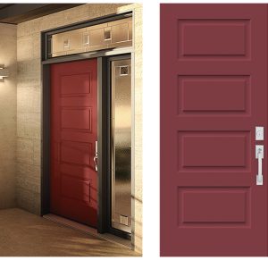 Distinctive embossed details create a sleek, post-industrial look. Designed to integrate a doorlite or pull bar, it’s perfect for narrow entryways.